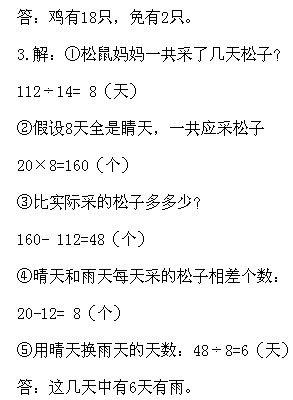 三年級奧數下冊:第十一講 雞兔同籠問題習題解答
